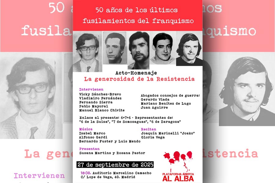 Acto-Homenaje organizado por la Plataforma abierta Al Alba: 27 de septiembre, a las 18:30 en el Auditorio Marcelino Camacho. C/Lope de Vega, 40, Madrid