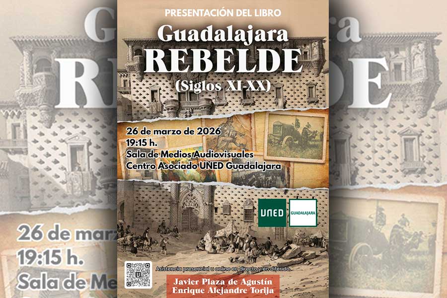 El próximo 26 de marzo, a las 19,15 horas, en sala de audiovisuales del Centro Asociado UNED de Guadalajara, Centro San José, tendrá lugar la presentación del libro, "Guadalajara rebelde. Siglos XI-XX", obra de los historiadores Javier Plaza de Agustín y Enrique Alejandre Torija.