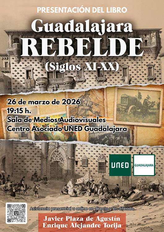 El próximo 26 de marzo, a las 19,15 horas, en sala de audiovisuales del Centro Asociado UNED de Guadalajara, Centro San José, tendrá lugar la presentación del libro, "Guadalajara rebelde. Siglos XI-XX", obra de los historiadores Javier Plaza de Agustín y Enrique Alejandre Torija.