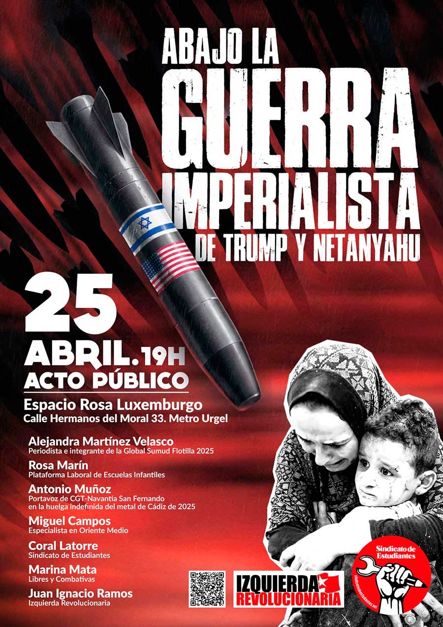 Esta agresión criminal nos coloca ante una gran crisis económica, que disparará la inflación, aumentará el empobrecimiento, recortará más los servicios públicos y provocará despidos masivos. La factura de esta guerra la pagaremos los trabajadores y la juventud de todo el mundo. Los Gobiernos europeos, aunque algunos dicen “no a la guerra” de boquilla, siguen aprobando los mayores presupuestos militares y formando parte de un bloque imperialista (OTAN) que tiene las manos manchadas de sangre.